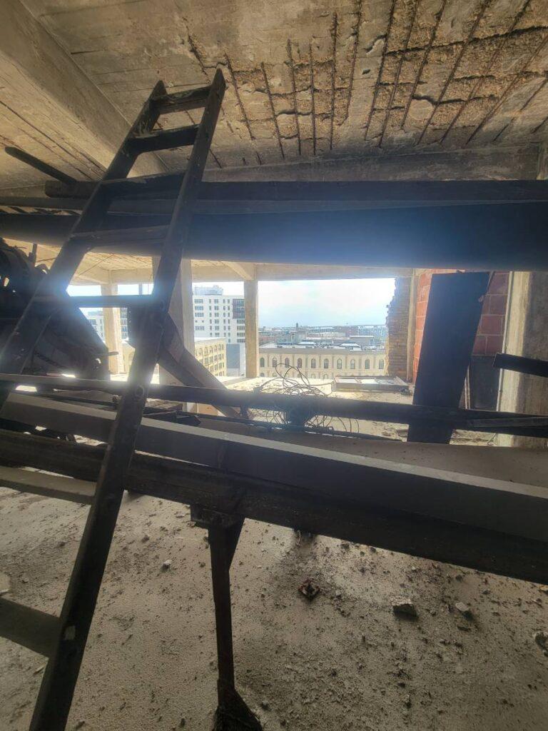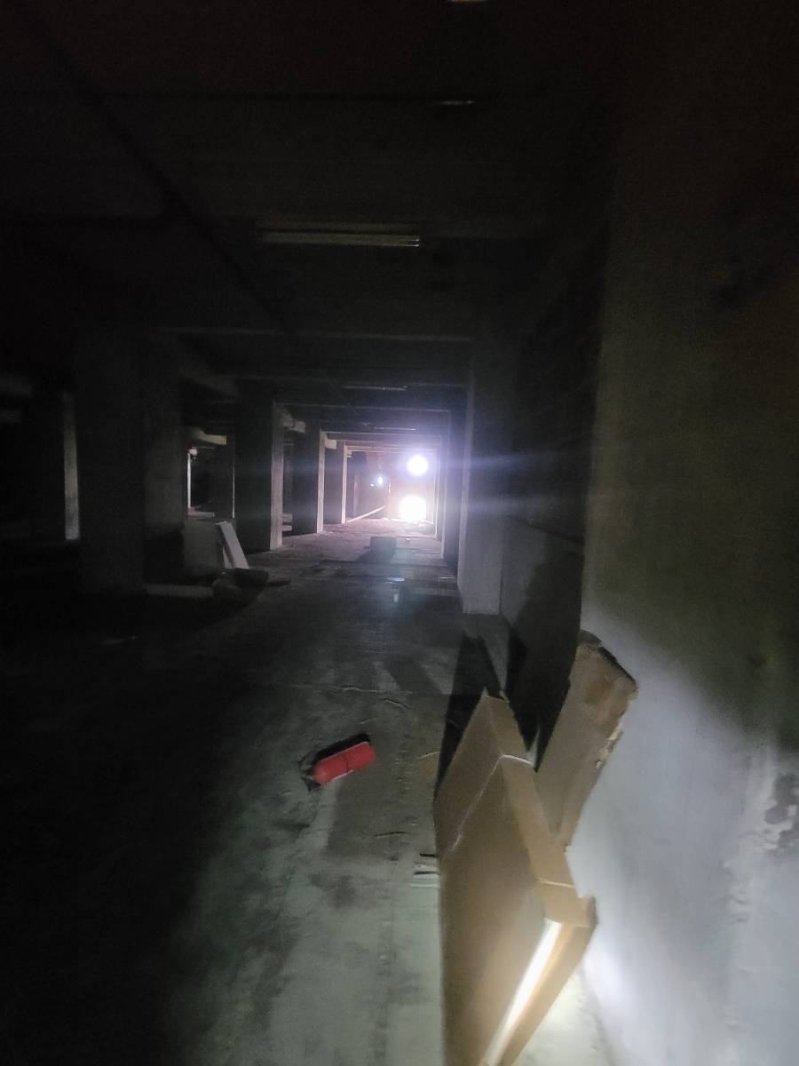The closer we got to the building, the more and more it looked to be completely sealed! We found a small parking area a couple blocks down, and decided to walk the perimeter. When we turned to walk down the last angled side of the building we were greeted with a large hole that had recently been opened up!