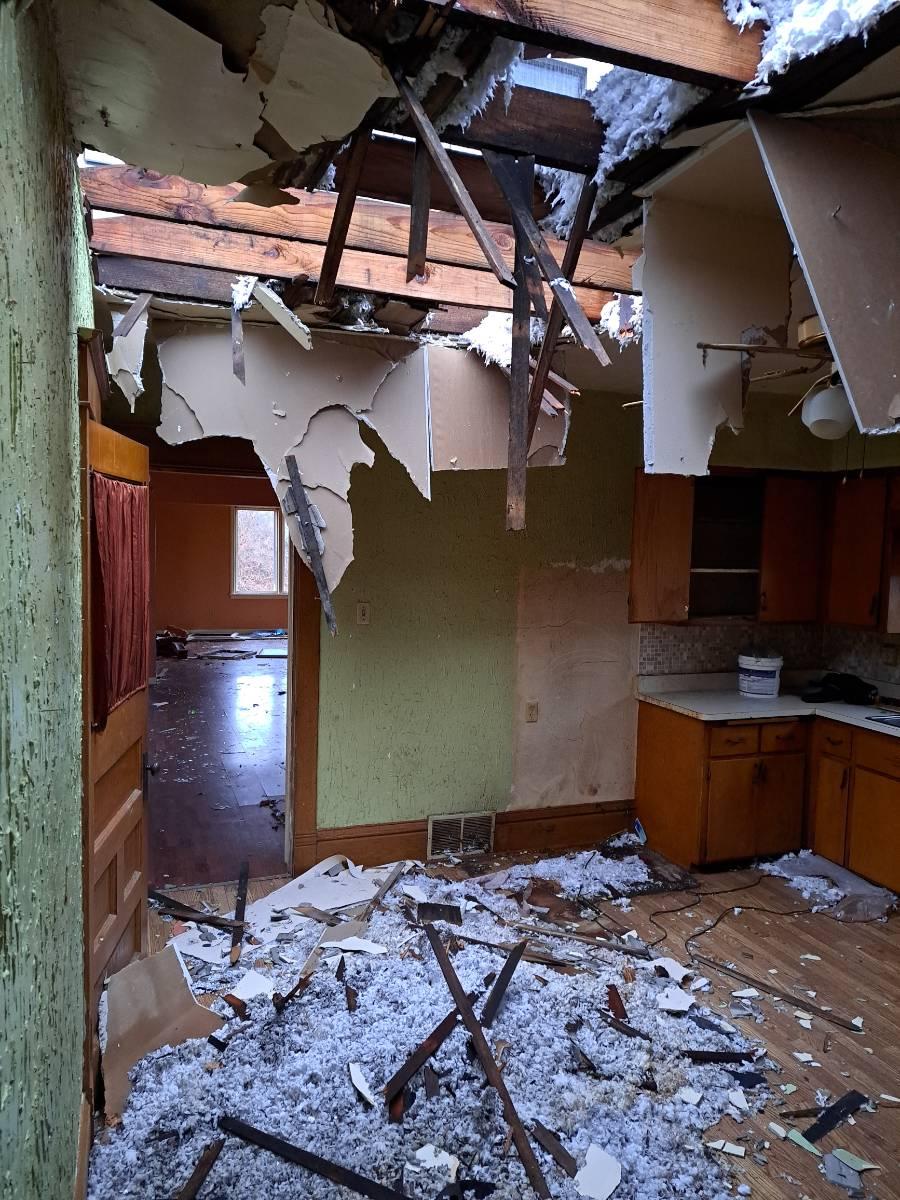 We decided to ditch the vehicle between the barn and an outbuilding to shield it from the road. We took a short time documenting the barns and the silo before we headed inside the house. Once inside, I noticed a pile of holes in the ceilings that went straight out through the roof, these didn’t feel like normal water damage to me. The were also two “bodies” on the dining room floor. Initially I thought they were for police do training, but upon further inspection I think the were for firefighter or EMT training. Since these “bodies” had “dead weight” and reacted like an unconscious person, they would’ve been the proper analog for training purposes.