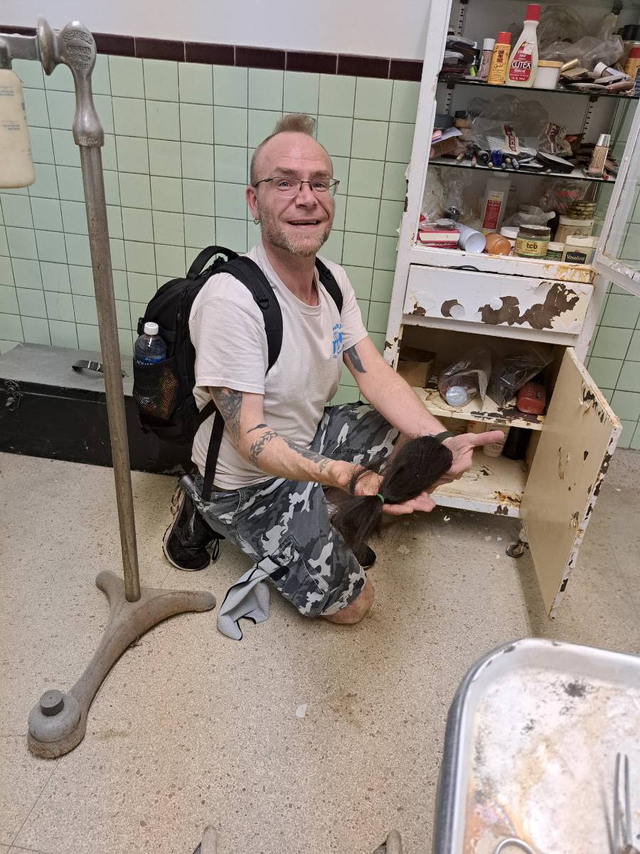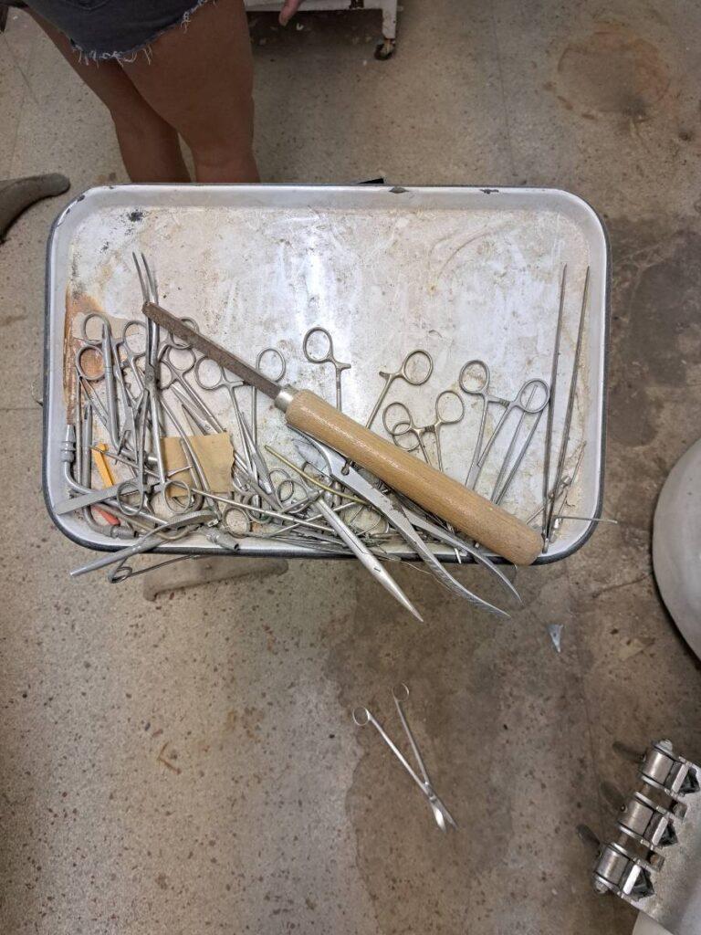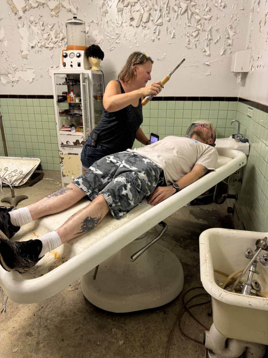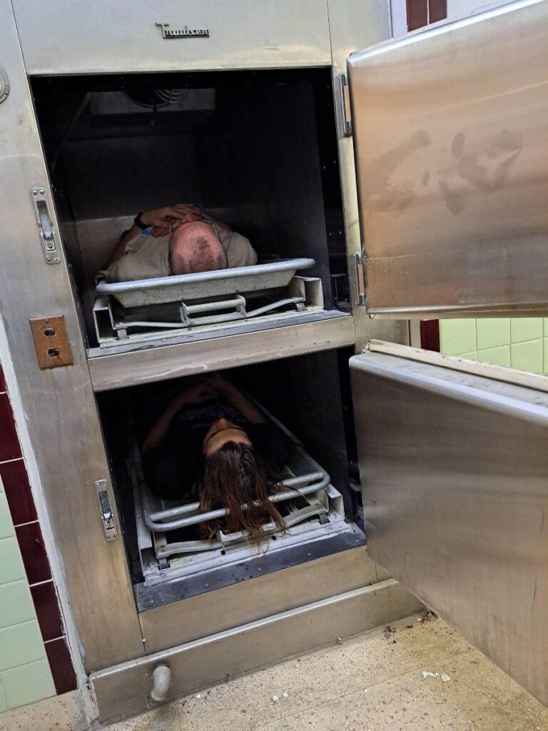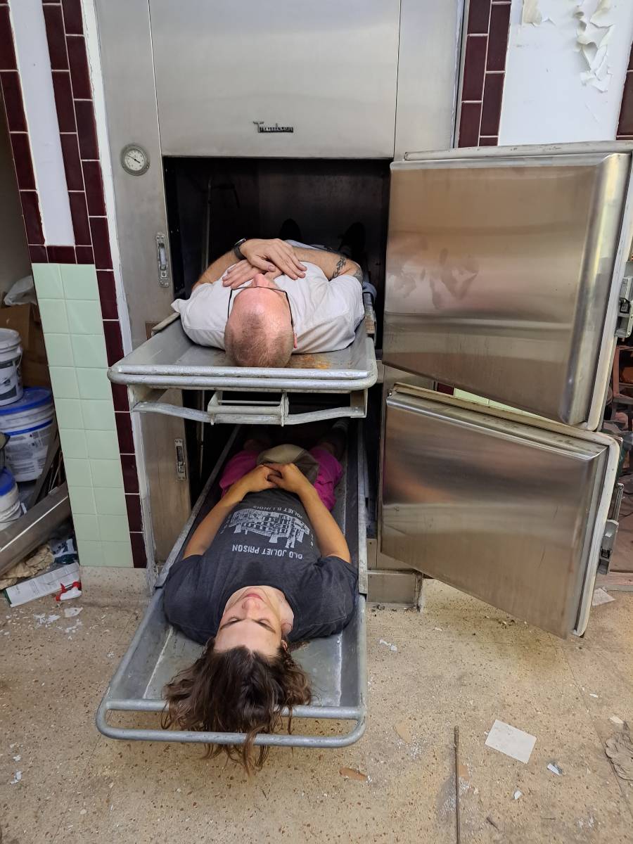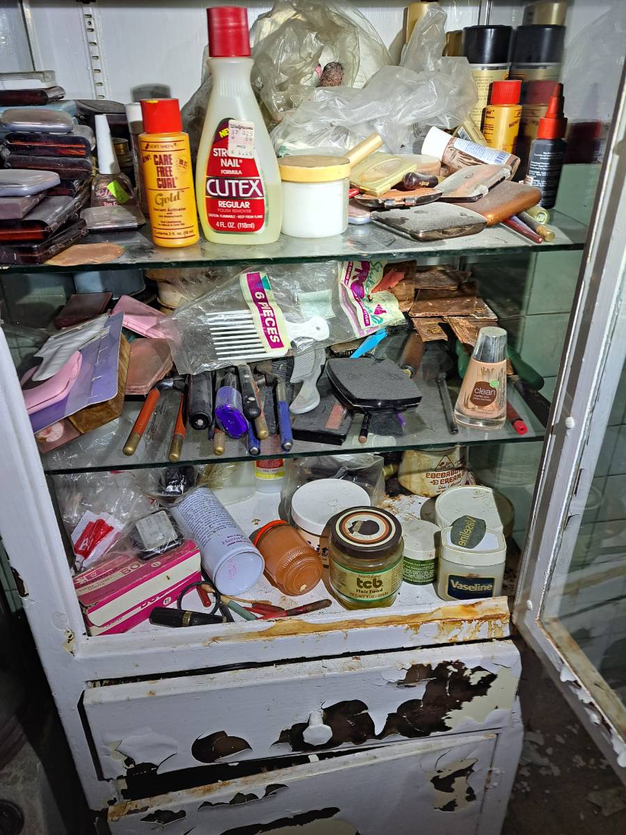 We entered the body preparation room or mortuary and we were instantly greeted with body coolers and embalming tables. A tad more roaming, and we found embalming pumps, tools, make-up, wigs, haircare products, mortuary putty, and even numerous restorative waxes for any and all the detailed and in-depth restorative arts that needed to be performed here. I don’t know why, but this was a sobering moment for me. “No one gets out alive” is all I could think. When we go, we all need a lil work to “Show Up” that last time for our friends and loved ones!