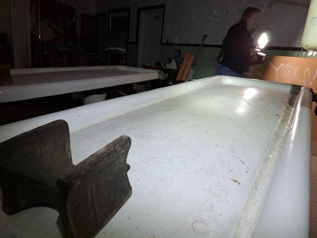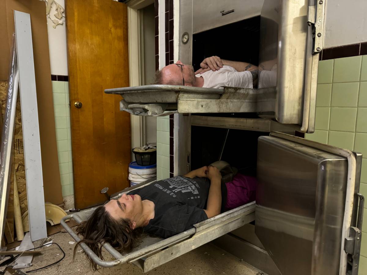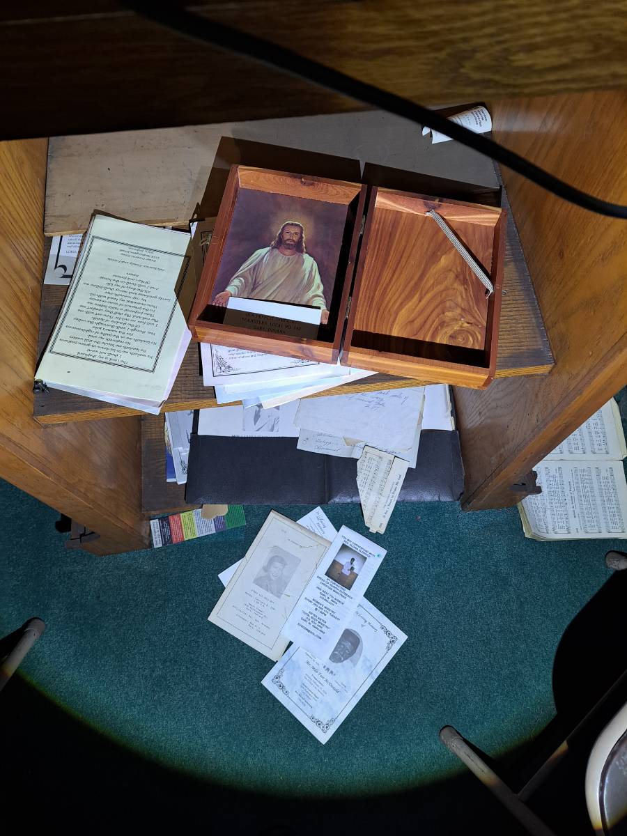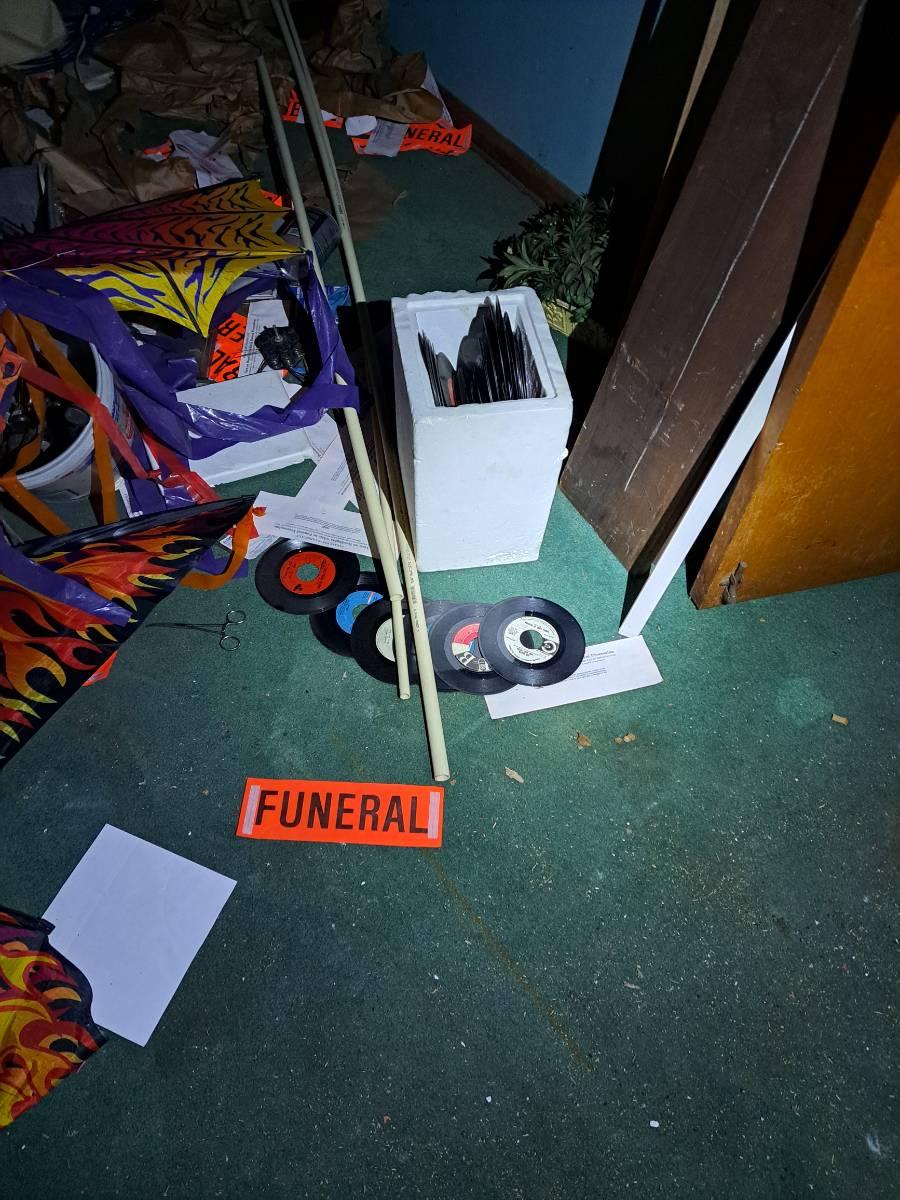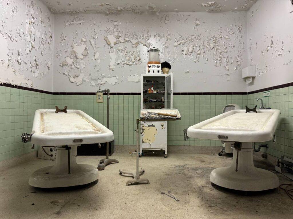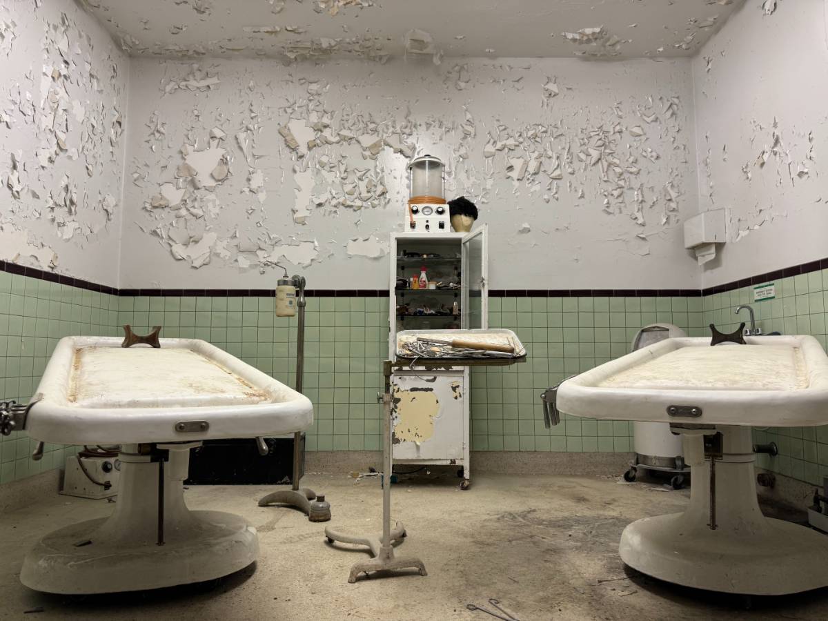 Initial few feet in the door felt unrealI had a high school friend who was going to study restorative artsThis is an embalming pump/machine, and it does all the nasty hard work.. I was saddened I didn’t try this wig on.. Till next time, friends….Body coolers – not so cool on a 90 degree daykitchen now so cluttered with everything, you couldn’t move the door anymore open or closed.playing a ton of video games… I half thought we would find our next clue or piece of backstory on that reel to reelsuch an eerie environment normally. Yet, with just us 2(hopefully) quietly roaming here, it made it somehow worse. Every sound we thought we didn’t make was amplifiedPiles of old albums, kites, and funeral flags lay everywhere. The vinyl came in both 7″ and 12″ styles!Stacks of funeral programs, pamphlets, and brochures. Selling everything from caskets and plots of land, to your salvation and lasting memory.“side” visitation rooms. The smaller rooms that can be divided for multiple viewings. Now just more cluttered storageThis was the majority of the neglect.. piles of old paperwork strewn about… A staggering amount of this is “scratch-off” & “powerball”/”megamillions” style lottery ticketsnot a ton a tags or b.s., just clutter and paperwork in most places..This bathroom though! I’d take this stylin bathroom remodel in my home. I picture a lady mortician or Funeral director enjoying a smoke in that chair. Relaxing a bit, while she finishes her make-up, before that day’s long work.10/10 as far as cozy bathrooms go! In an abandoned apartment, above and abandoned funeral home, was this clean time capsule of a bathroom.piles and piles of various gurneys for moving the deceasedname plates that weren’t picked up and used?? maybe they were misspelled or had incorrect info – dates, etcpaperwork from the late 30s early 40syes that is a small casketsadly, tucked away in the basement there was a small wall full of children’s casketsMore metal gurneys and caskets on wheels – burial vaults maybe??Two children’s caskets/vaults lay at odd angles, tossed next to an unused bo-flex and piles of clutter and detritusMaybe it closed because of a gambling issue?? or the vagrant that stays here is “hoping to hit it big” – Literally hundreds/thousands?? maybe>>>? of printed lotto tickets. Numerous bags full of them. 3 bags just in this pic.-or a scam maybe??I completely missed the tools on our initial pass through this room.. That IS Not blood on the wall as other explorers have alluded toThink of all that these containers have “seen”. This cabinet has been here, witness to so much, for so many decades…. ..I love the accidental shot <3I would find out weeks later just how REAL that that pony-tail is.