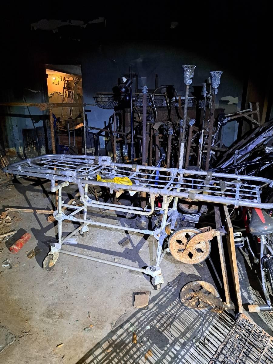 More metal gurneys and caskets on wheels – burial vaults maybe??