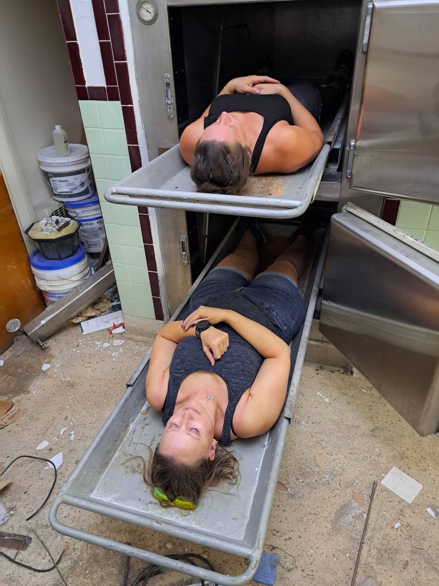Told you I regretted not trying the wig on, and I NEEDED to change that! “The Thinker” I am not, but we have fun!my excitement at this being real was way too highI was like a drug detection dog… Happy to show off my find…body humidors today, not coolersThis new layout fits nicely, but I am a bit partial to our initial layoutthe cobwebs….“Mrs. Thursday Newport”Hey we found the light switchanyone wanna get a few reps?nice choice in tunesFamily photos always hit different in a bandoin a funeral home, they seem a bit more sombersuch fun wall paper, and it is still holding stronggreat wallpaper adhesion & designthis bathroommirror selfiesmore mirror selfiessad zone againThis is a vintage Anheuser Bush beer crate – allegedly we missed the cremation vaults on our initial visit herevintage late 80s early 90s toy/ learning deviceMJ ha ha ha ha ha *cough – cough*“for a time, we became so close” – beef referencing the wig..the laughter this day… that is what life is all aboutour faces hurt from laughterso so many smileswell, it has been fun…. I’d say even worth it!